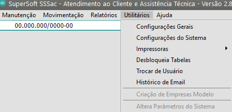 Caso o sistema esteja em modo demonstrativo acesse o Menu Utilitários>Altera Parâmetros do Sistema.