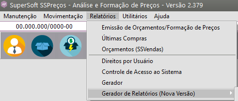 Em seguida, utilizando o login do SUPERVISOR, acesse o menu Relatórios/Gerador de Relatórios (nova versão)/Cadastra