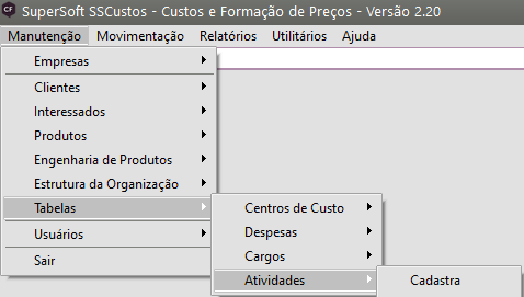 Para cadastrar Atividades você deve acessar o menu Manutenção/Tabelas/Ordens de Serviço/Atividades.