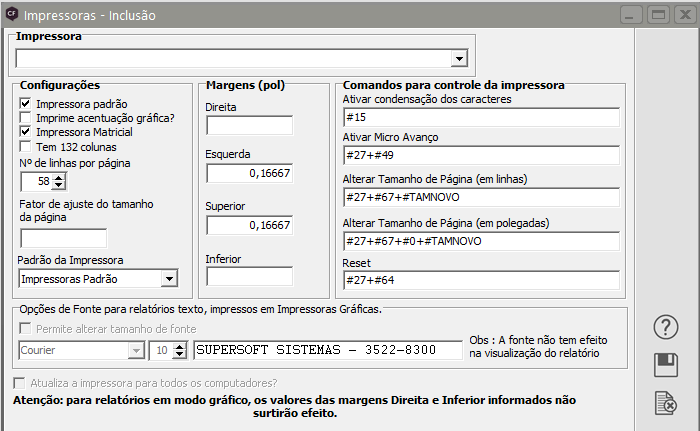 e) Os valores das margens Direita e Inferior não surtirão efeito na emissão de relatórios em modo gráfico.