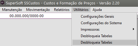 Para desbloquear tabelas que por ventura foram bloqueadas durante a utilização do Sistema, acesse o menu Utilitários>Desbloqueia Tabelas