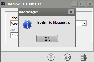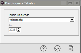 O Sistema já trará a definição da Tabela que poderá estar Bloqueada e o Ano