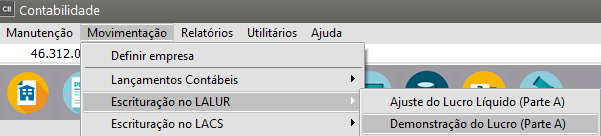Para você escriturar a Demonstração do Lucro Parte A acesse o menu Movimentação>Escrituração no LALUR>Demonstração do Lucro (Parte A)