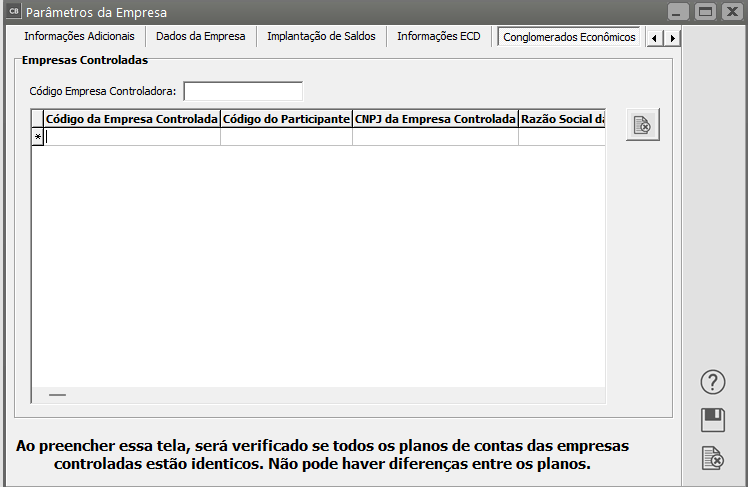 Em seguida você deverá informar todas as Empresas que são controladas pela Empresa que você definiu no campo Empresa Controladora