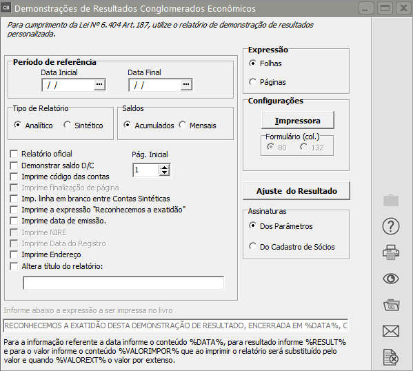 Imprimindo a Demonstração de Resultados Conglomerados Econômicos
