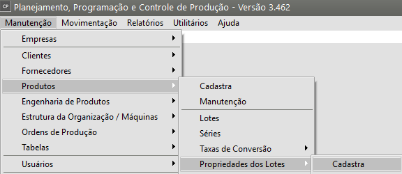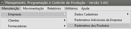 Para que você consiga definir as propriedades dos lotes, deverá acessar o menu Manutenção>Empresas>Parâmetros dos Produtos