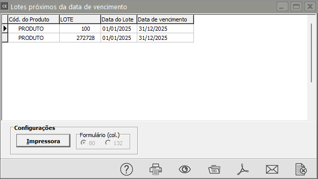 Ao acessar a o Sistema e definir a Empresa, se o Sistema identificar que existem Lotes que estão com a Data de Vencimento próxima, apresentará uma tela "Lotes próximos da data de vencimento", contendo: