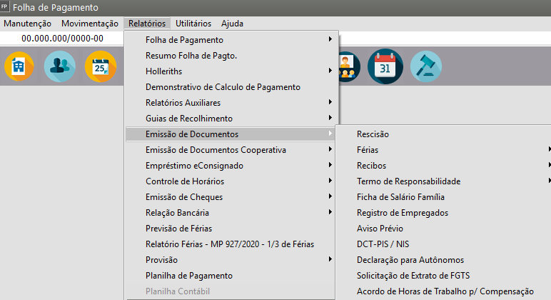 Para que você visualize/imprima os Documentos relacionados ao Sistema acesse o menu Relatórios>Emissão de Documento