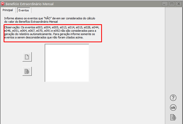 • Defina os Eventos que não devem ser considerados no momento da apuração dos valores, lembrando que existem eventos que o próprio sistema irá ignorar
