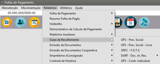 Para que você visualize/imprima as Guias de Recolhimento do Sistema Acesse o menu Relatórios