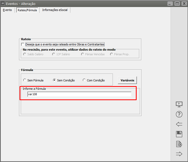 - No campo Informe a fórmula digite var108