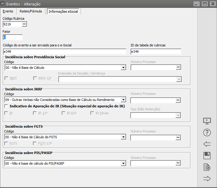 - Campo Incidências deixe sem selecionar nenhuma das opções
