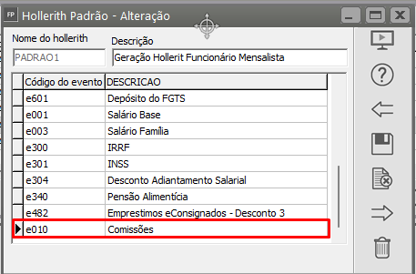 3° Passo) Informar percentual e Hollerith Padrão COMISSÃO