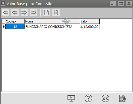Informe o valor que será considerado no cálculo da comissão (valor base que será multiplicado pelo percentual definido no cadastro do trabalhador comissionista
