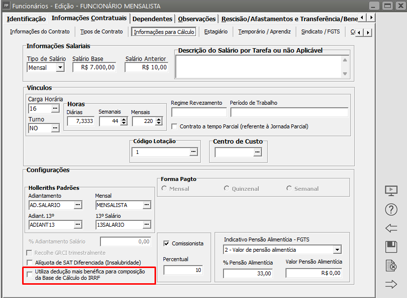 "Utiliza dedução mais benéfica para composição da Base de Cálculo do IRRF"
