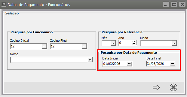 Pesquise pelo Código do Trabalhador e no campo Pesquisa por Data de Pagamento, informe a Data Inicial e Data final (Mês Completo) em foi informada a data de pagamento do hollerith gerado e que se encontra com cálculo de IR errado