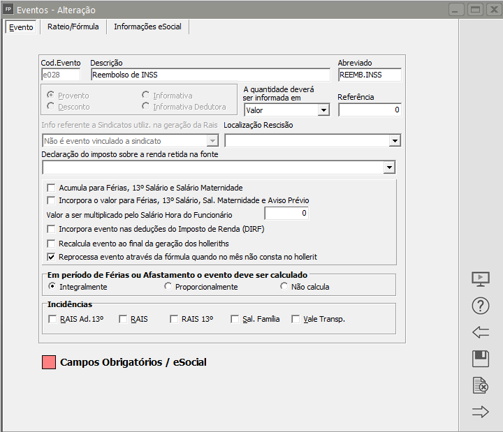 Se você possuir trabalhador que tenha entrado em férias no Ano de 2025 e no momento da Geração Mensal do Hollerith do mesmo, foi calculado o evento e028 - Reembolso de INSS
