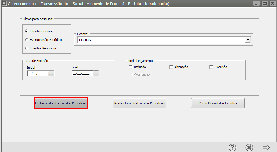 Acesse o Gerenciamento de Transmissão do eSocial filtre por Eventos Iniciais e verifique se foi criada a carga de inclusão dos eventos que você criou anteriormente