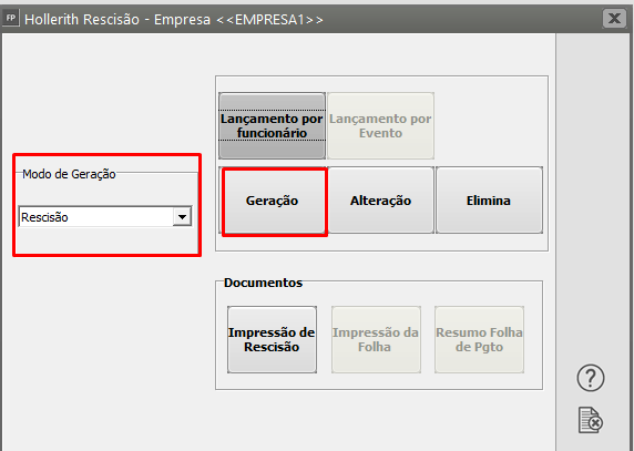 Defina o Modo de Geração Rescisão e gere a Rescisão normalmente