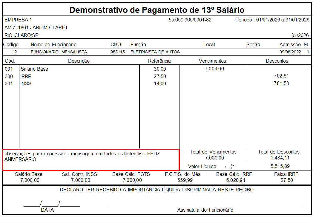 Lembrando que, a mensagem de Feliz Aniversário no mês de aniversário do funcionário possui uma configuração própria no menu Utilitários>Configurações da Empresa
