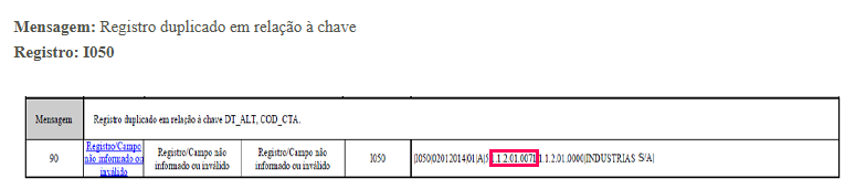 Motivo: Na validação foi identificada contas duplicadas no plano de contas.