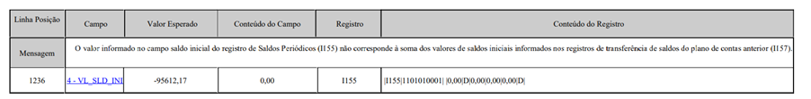 Registro I155 - Saldo inicial informado no I155 difere da soma dos saldos iniciais dos registros de transferência do plano anterior (I157)