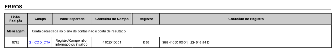 Rejeição I355 - Conta Cadastrada no Plano de Contas não é Conta de Resultado