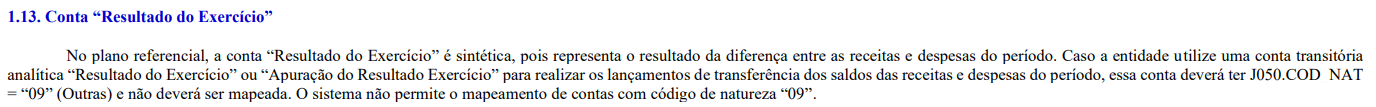 O grupo RESULTADO DO EXERCÍCIO deve ser estruturado de forma separada dos demais grupos do plano de contas, justamente por se tratar de um grupo transitório, cuja única finalidade é concentrar os saldos de despesas, receitas e custos para viabilizar a apuração do resultado do exercício., Além disso, conforme orientações do ADE COFIS nº 133/2022 (pág. 16), esse grupo não deve conter vínculo com o Plano Referencial, dado seu caráter específico e temporário: