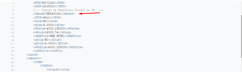 Para resolver esse caso, basta alterar o campo cBenef preenchendo um código de benefício vigente, conforme tabela de código de benefício fiscal por UF