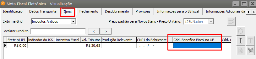 Em seguida defina corretamente o campo Cod. Benefício Fiscal na UF